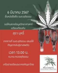 เครือข่ายกัญชา บุก ก.ยุติธรรม 6 มี.ค. จี้เทียบคุณโทษ สุรา ยาบ้า บุหรี่