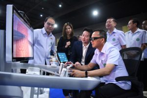 นายสมศักดิ์ กล่าวว่า รัฐบาลและกระทรวงสาธารณสุขมีนโยบายที่จะยกระดับ 30 บาทรักษาทุกที่ เพื่อเพิ่มการเข้าถึงบริการสุขภาพ ทำให้พี่น้องประชาชนได้รับบริการที่ดี สะดวก และปลอดภัย ผ่านการยกระดับบริการ ด้วยปัญญาประดิษฐ์ หรือ AI ทางการแพทย์ และเทคโนโลยีสุขภาพ เช่น หุ่นยนต์ทางการแพทย์ ซึ่งเป็นเทคโนโลยีขั้นสูง ที่แม่นยำและปลอดภัย จะช่วยลดความผิดพลาดและภาวะเเทรกซ้อน เพิ่มประสิทธิภาพการรักษา และเพิ่มโอกาสทางเศรษฐกิจสุขภาพ สู่ Medical & Wellness Hub ปัจจุบัน มีหลายประเทศที่ใช้หุ่นยนต์ทางการแพทย์จำนวนมาก เช่น สหรัฐอเมริกา เยอรมนี ฝรั่งเศส สหราชอาณาจักร ญี่ปุ่น จีน และเกาหลีใต้